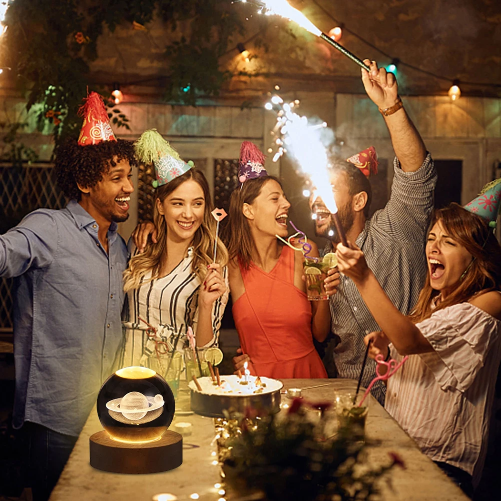 كرة كريستال ضوء الليل كرة كريستال مصباح ثلاثية الأبعاد محفورة نظام طريق حليبي كرة كريستال مع قاعدة خشبية USB شحن هدية للأطفال
