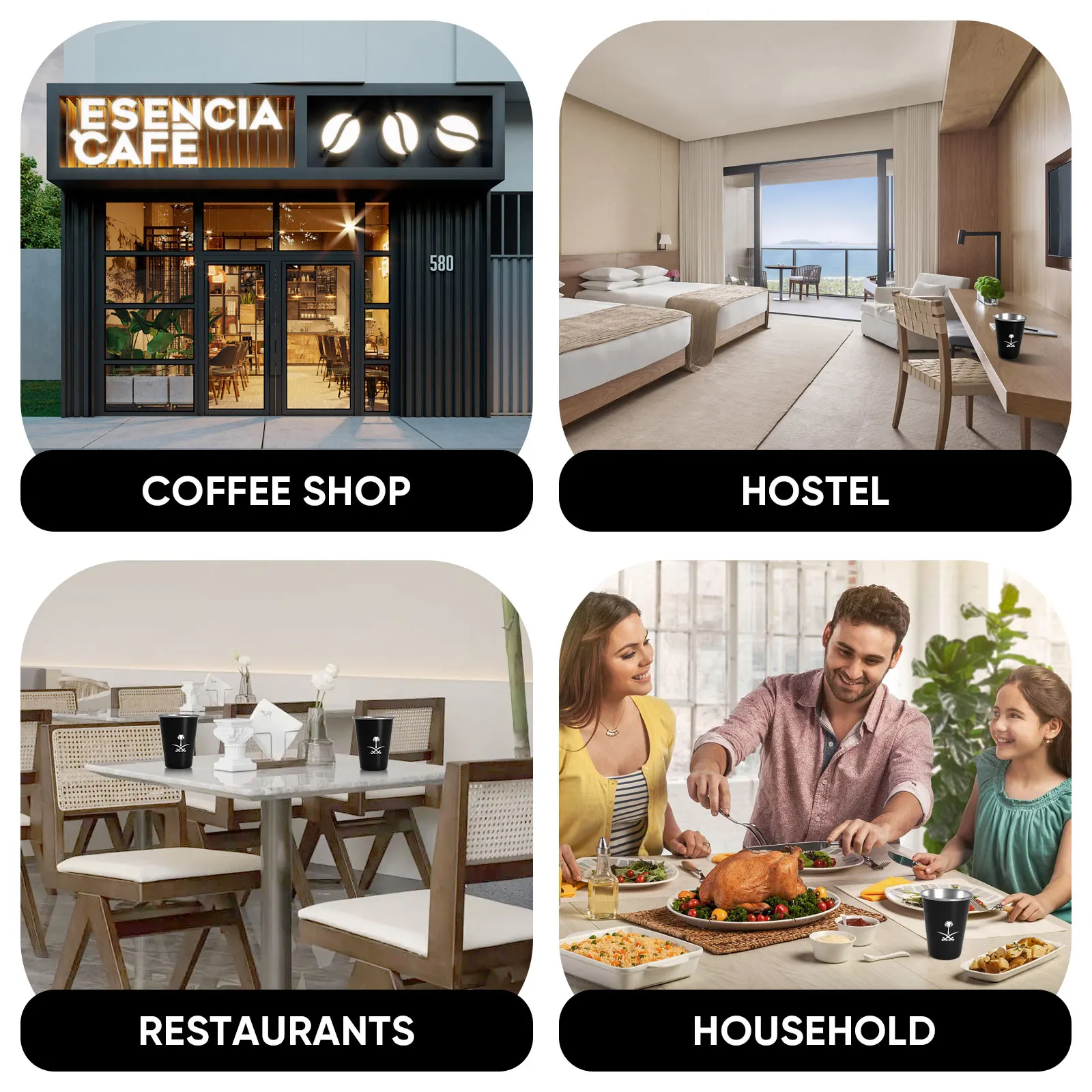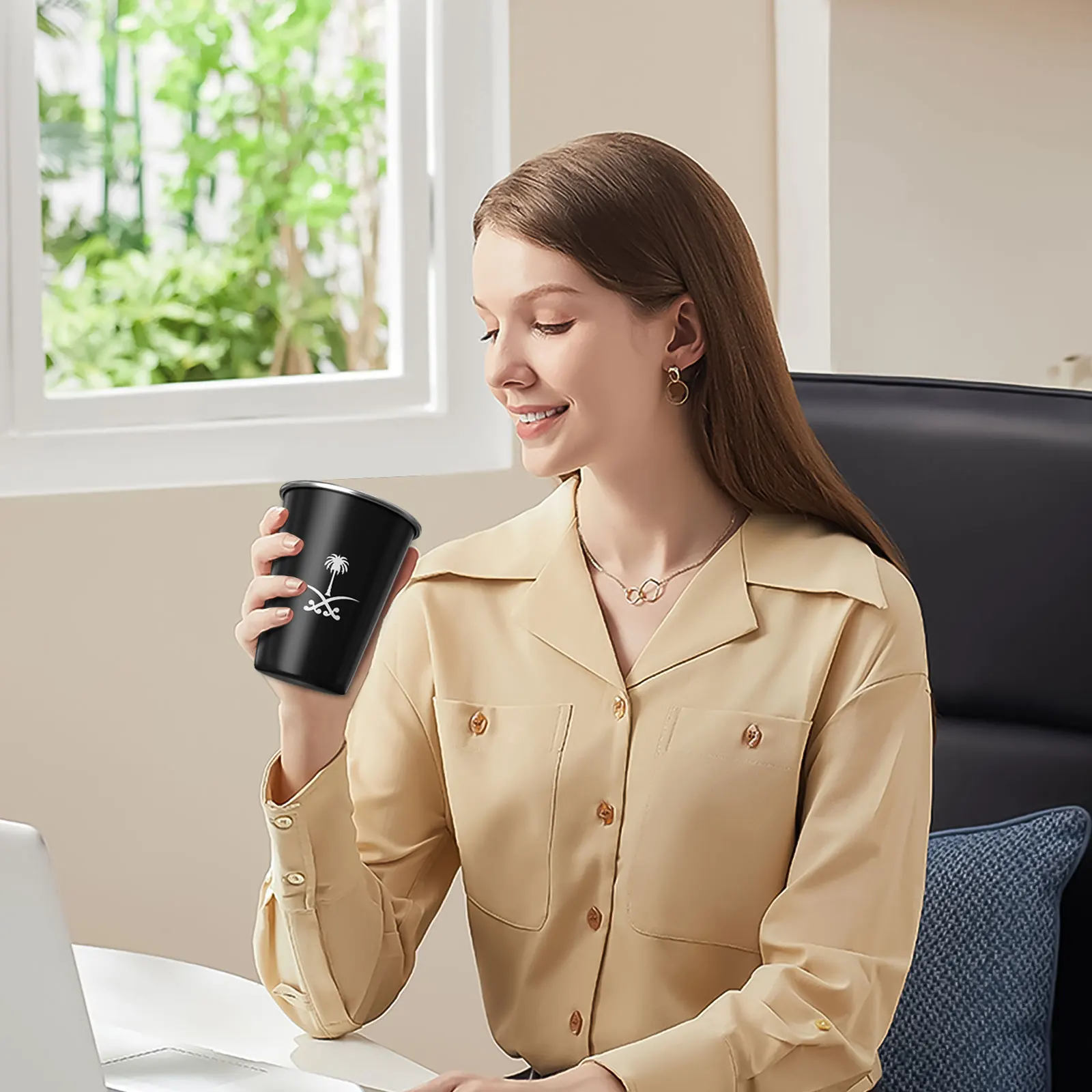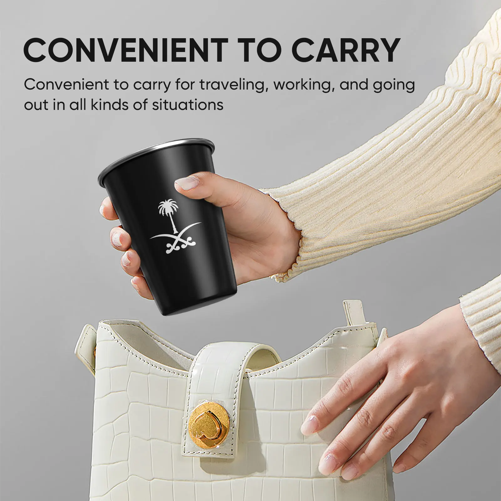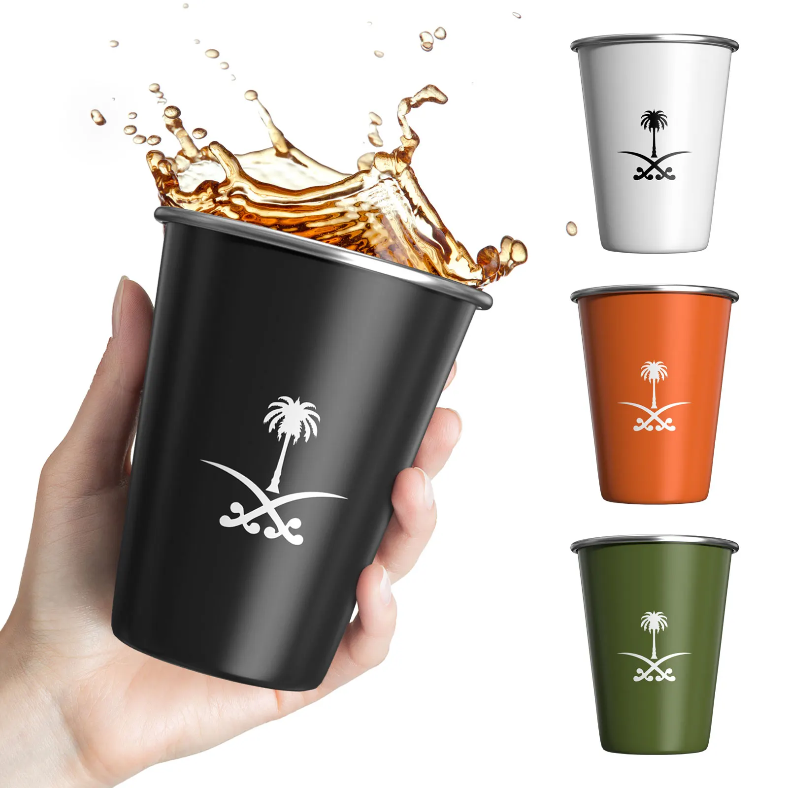 A cup of stainless steel coffee with a national logo of the Kingdom of Saudi Arabia, a cup of water for outdoor camping, a cup of parties for parties, birthday gift,